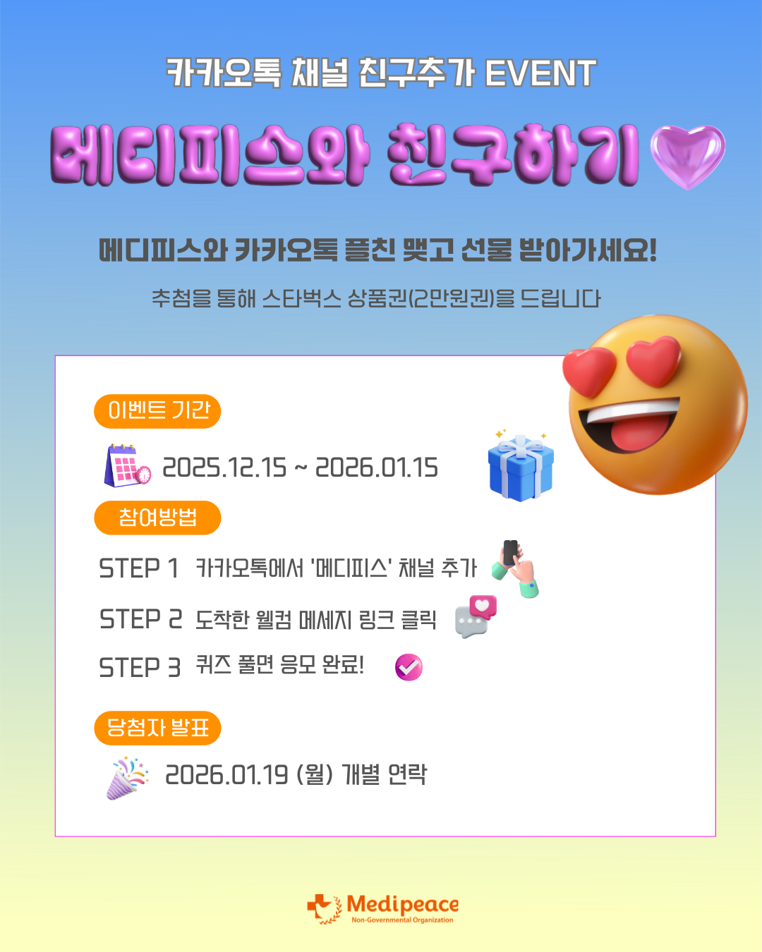 전화번호 : 02-2068-4679 ㅣ FAX : 02-6008-4079 ㅣ E-mail: medipeace@medipeace.org