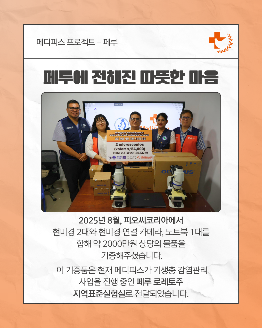 작은 나눔이 페루의 의료 환경에 어떤 큰 변화를 가져올지, 피오씨코리아와 메디피스가 함께 만들어갈 페루의 건강 이야기,