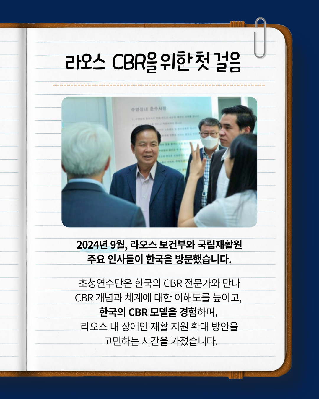 이에 2024년 9월, 라오스 보건부와 국립재활원 주요인사들이 한국을 방문했습니다.
